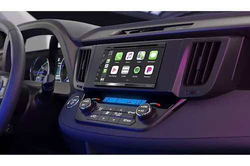 - wired screen mirroring for iPhone and Android with “Mirroring for Kenwood” app