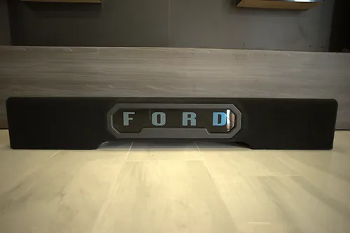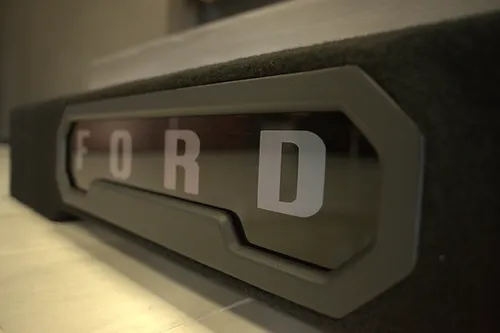 If you chose interior lighting it will automatically come with a see through plexiglass face to display the inside. If you chose exterior lighting an acrillic piece will be built into the border of the box. If you would like something besides “FORD” on your box please specify it in the text below. In that same text field you can chose how many subwoofer cutouts you can get.